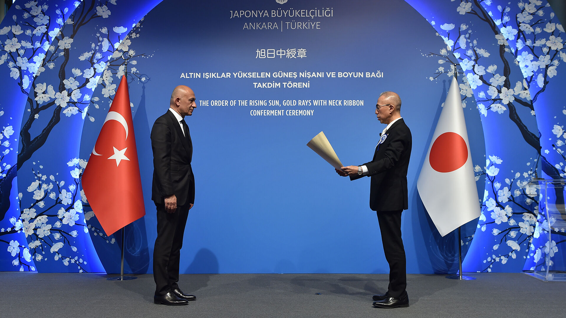 1875’ten bu yana Japonya’nın ilk ulusal nişanı olan Yükselen Güneş Nişanı, 1981 yılından itibaren Japonya İmparatorunun takdiriyle, değerli çalışmalara imza atan yabancılara da veriliyor. Yükselen güneş kadar güçlü olmayı simgeleyen ödüle bugüne kadar aralarında eski başbakanlardan Adnan Menderes, Bakanlar Fatin Rüştü Zorlu, Mevlüt Çavuşoğlu, Kemal Derviş’in yer aldığı 13 isim layık görüldü. Yabancılara verilen en yüksek nişan olan Yükselen Güneş Nişanı yakın tarihte, İtalya’nın eski Başbakanı Mario Monte, Yeni Zelanda’nın eski Başbakanı Helen Clark, ABD’nin eski Dışişleri Bakanı Condoleezza Rice ile eski Başkan Yardımcısı Richard Cheney, İngiltere’nin eski Dışişleri Bakanı William Hague ve İran’ın eski Dışişleri Bakanı Manuçehr Mottaki’ye takdim edildi.