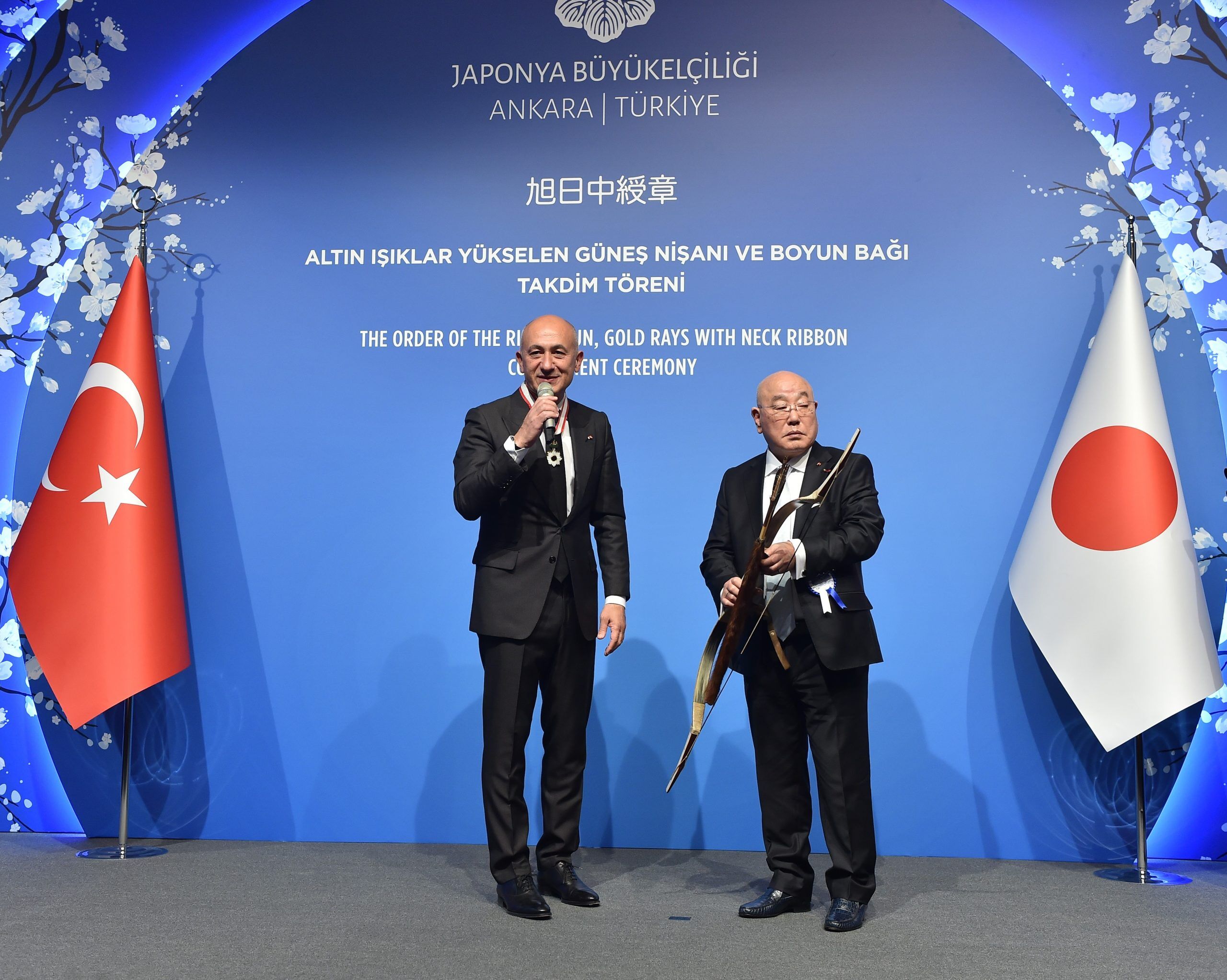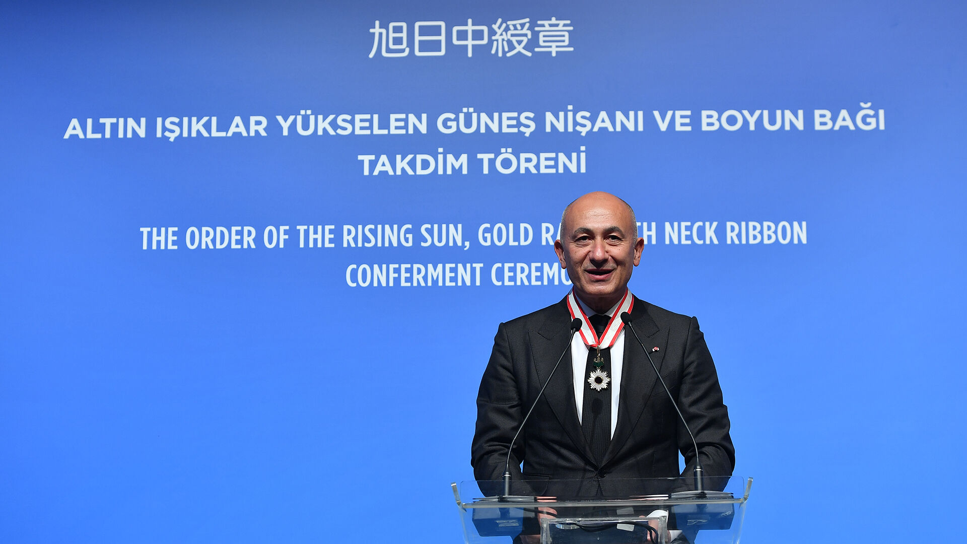 Japonya Büyükelçisi Kazuhiro Suzuki tarafından okunan Nişan Beratı sonrasında Dr. Erman Ilıcak’a Altın Işıklar, Yükselen Güneş Nişanı ve Boyun Bağı takdim edildi.