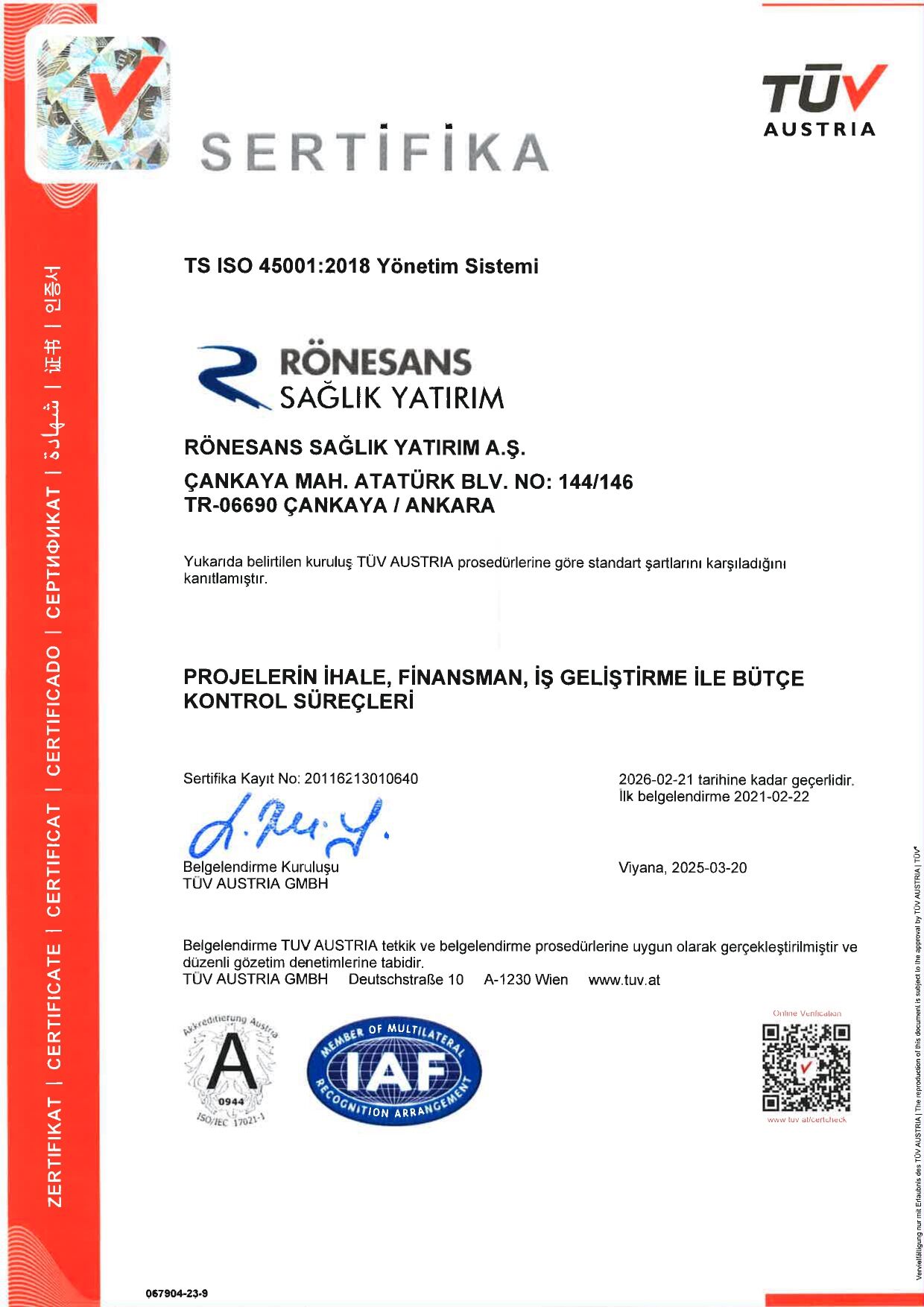 Anasayfa arrow Sertifikalar
